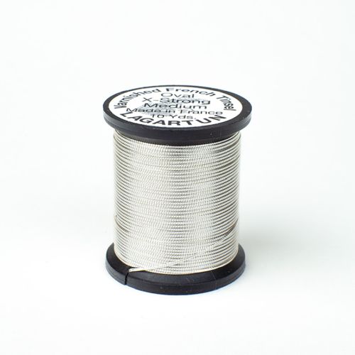 アトランティック・サーモン用のクラシックからイントルーダーまで、多くのパターンで必須と考えられるマテリアルで、もっとも汎用的なティンセルといえるかも知れません。リブ用として伝統的なもので、魅惑的な輝きをもたらしながら繊細なマテリアルを補強してくれます。ポリエステルコアを持っているのでたいへん強く、表面はバーニッシュ加工がしてありますので輝きが長持ちします。