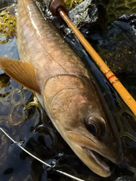 総チタンフレームトルザイトガイド。クラシカルな雰囲気のバターイエローブランクにトラッドなコパースレッドで螺旋巻きを。 このブランクカラーにぴったりなクリアオレンジをガイドスレッドに。段巻きはレッド。 カーボンシートとグラスシートを交互に重ねたコンポジットロッドで粘りとパワーを実現しました。ショートグリップの取り回しの良さはそのま まに、4フィートモデルよりもティップの粘り強さが出ていて、不意の大型トラウトとのファイトに安心感がプラスされました。 ガイドストックの関係で作成数は限られておりますことご容赦ください。 ※グリップ材は花梨瘤、ウォルナット、カーリーメープルの中からお選びいただけます。 ※メープルのグリップはスタビライズドウッドで今回少量のみの販売、次回予定はございません。SPEC