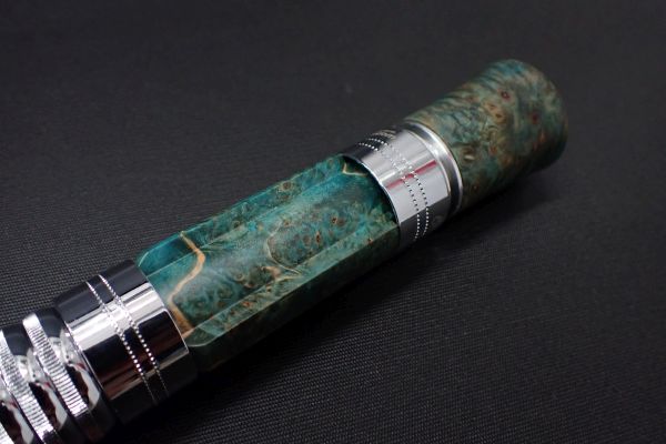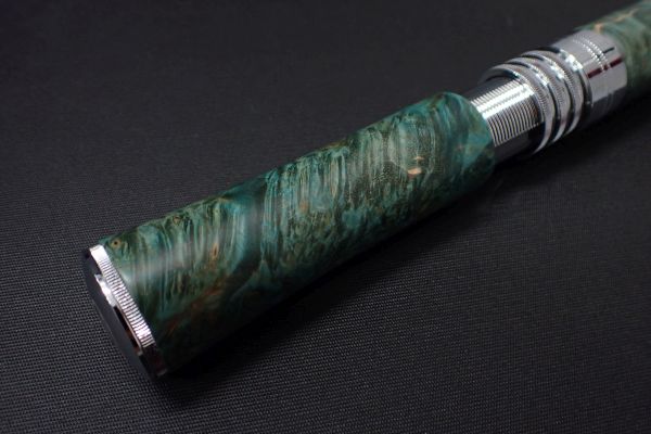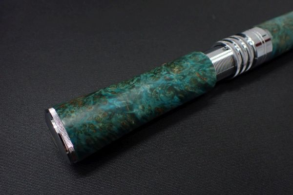 木材の内部に染色した樹脂を浸透・硬化させたスタビライズドウッド使用。色鮮やかで美しいウッドグリップです。 チャンピオンフェルール規格、スピニングロッド用です。 付属フェルールでお手持ちのロッドをチャンピオンフェルール化してご使用いただけます。 他社ロッドについても、フェルールの挿入部が約35mmまでのもは面一で装着可能です。 それ以上の長さの場合、装着時に面一にならず、段差が生じる場合があります。(固定自体は可能で使用には問題ありません。)製品仕様