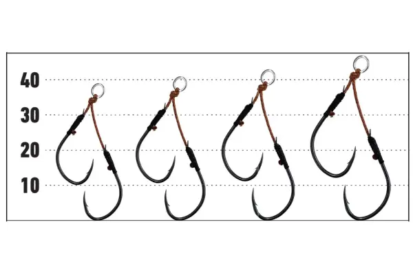 ワイドゲイプのショートポイント形状が高いフッキング率を実現。 また、アシストラインには溶接リングをセット。スプリットリングへの取り付けがスムーズに行えます。