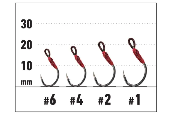 強いファイトに対応する太軸のループフック。自由度が高いためバレにくく、ルアーへの負担も軽減します。 ループ部分にはリリアンを採用。スムーズにスプリットリングに取り付けできます。