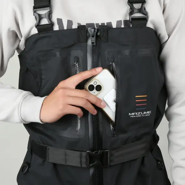 フロントは完全フルオープン仕様により、ウェーダーを着たまま内部の熱気を一気に放出でき、透湿性能を超えた結露の発生も防ぎます。着衣の整えや小用時も手間なく対応可能です。