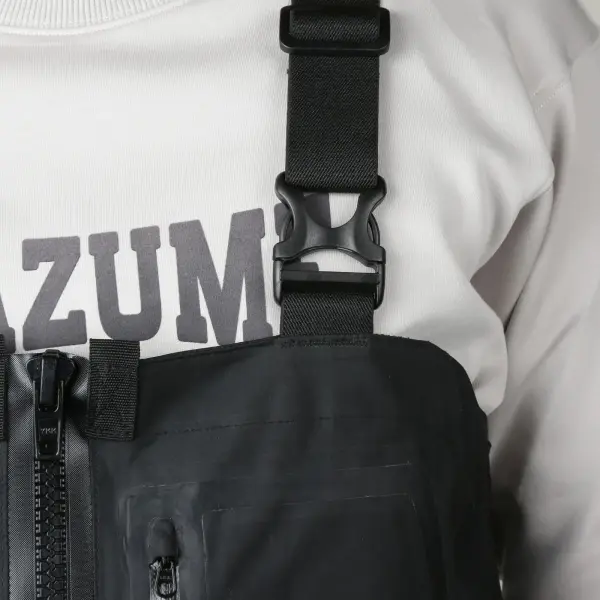 - 両サイドのポケットはiPhone Pro MAXが入る大きさです。止水ファスナーを使用しています。