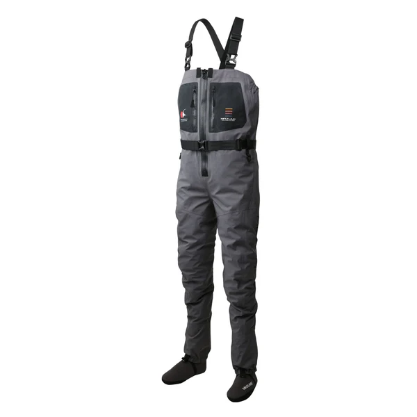 4レイヤーの国産生地は耐久性が向上するとともに透湿性にも優れており、夏場でもベタつきを抑えて快適に釣りに集中できます。 履き口をワイドにすることで、体格の良い方でも履きやすくなりました。 透湿素材はPVCに比べ耐久性はやや劣りますが、快適さを優先することで多くのメリットが得られます。水中に立ち込み、水の感触を全身で感じる。流れや底質、水温を直接読み取り、魚との駆け引きを楽しむ。ストレスの少ないハイエンドモデルだからこそ、これが可能になります。