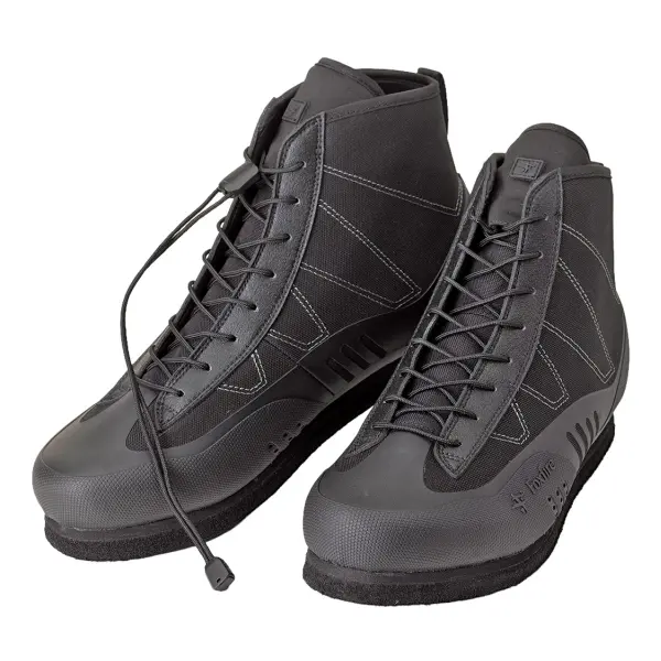 山岳渓流での信頼性を追求し、Foxfireの技術を結集してグリップ性能・軽量性・耐久性を高い次元で備えたウェーディングシューズです。アッパーのプロテクションには耐摩耗性・耐候性に優れるRPU(ポリウレタンラバー)を採用し、ベース地との直接接着成型によって強度と軽さを両立。フィット感重視の2Eワイズ仕様、歩行の屈曲を利用した水抜き構造により、軽快な遡行をサポート。8ホール仕様でホールド感が高く、シューレースは解けにくいコードロック式。ストッパーと余り紐はシュータン内のポケットに収納でき、スマートで安全です。アウトソールは幅広いフィールドに適したフェルト仕様(ピン無し)となります。