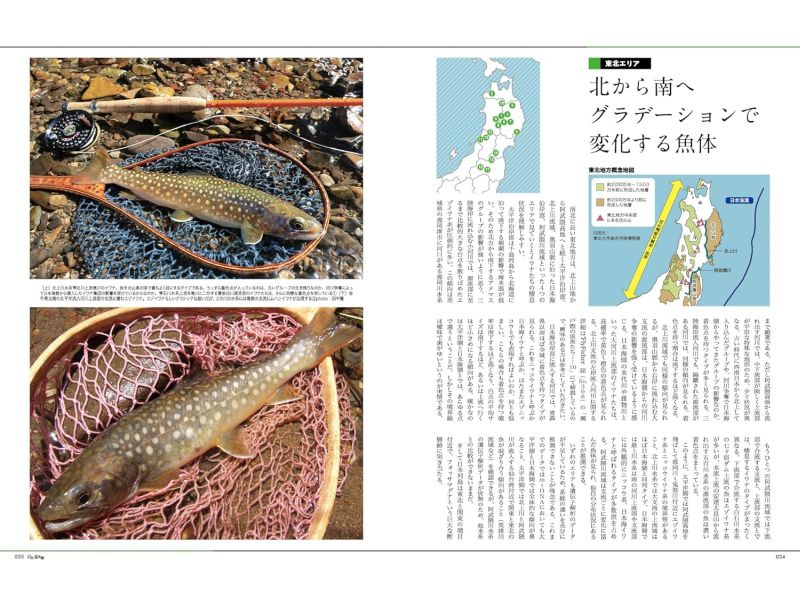 曼荼羅とは本来、密教修行者が悟りを得るためのシンボルとして、彼らの世界観を図案化したものといわれている。それは宇宙であり、天界を表わすデザインでもある。密教では世界をひとつの生命体として位置づけているが、そこには自然界の生命活動も含まれている。岩魚曼荼羅とは、神聖であり、神秘の象徴ともいえる個性豊かなイワナたちから学びを得るための絵図である。河川の最上流域、天空に最も近い水域で命をつなぐイワナたちの美しくも儚い容姿に敬意を込めて、全国の釣り人たちが撮影した画像をとくとご覧いただきたい。 次項からは国内のイワナ棲息地を8つのエリアに分けて解説を進めていく。そして不要な混乱を避けるため、従来どおりの外観的特徴に基づいた1種4亜種(アメマス:エゾイワナ、ニッコウイワナ、ヤマトイワナ、ゴギ)の呼称を使うことを基本にする。