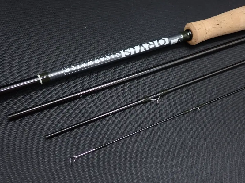 細いレベルライン若しくはモノフィラ + 長いリーダーの先についたタングステンヘッドのニンフフライを自体の重さでキャストし微かなトラウトのコンタクトをとる為の、繊細でしなやかティップ。大型のトラウトの引きに負けない確りとしたバット、スムーズにベンドする追従性の良いベリー、ハイコストパフォーマンスヨーロピアンニンフ用ロングロッド。WFやDT + ロングリーダーでの繊細なドライの釣りにも活躍します。使用感少な目。ストリッピングガイドの下に小傷、グリップに若干の汚れ有。