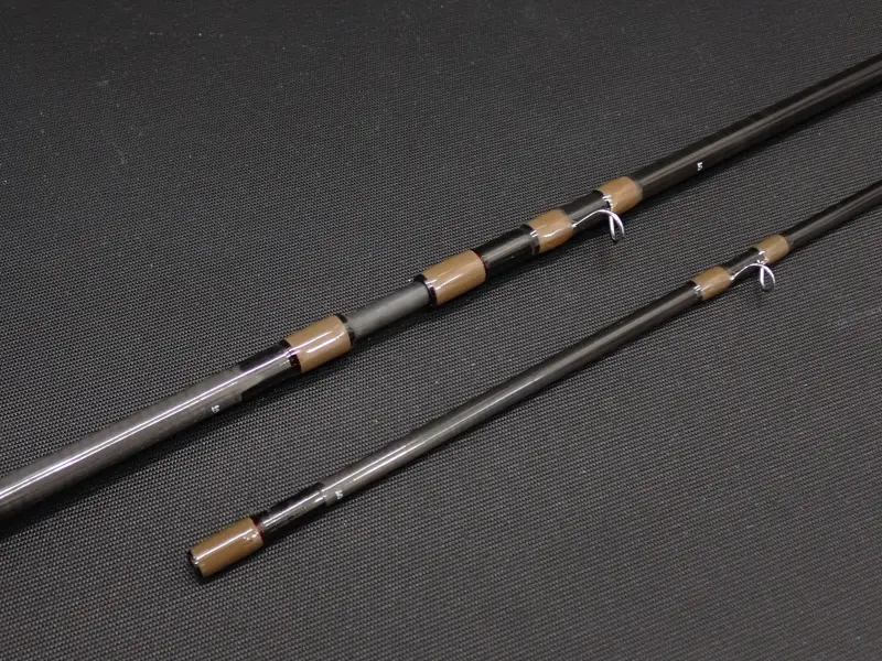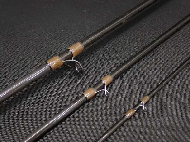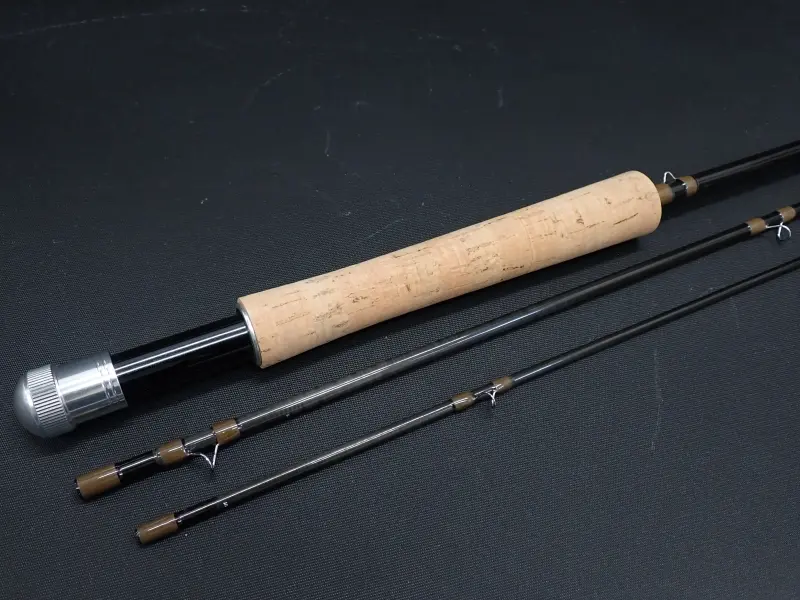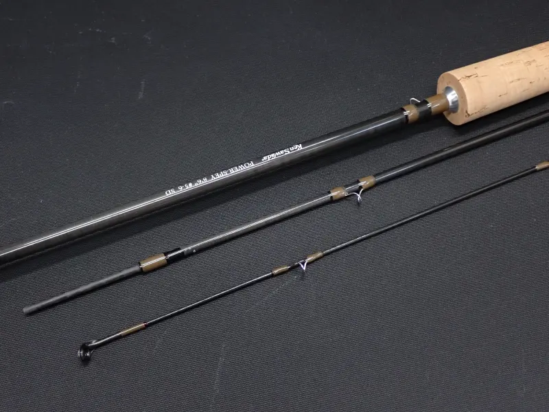 SD スーパードリフトの名の通り、ウェットフライをナチュラルドリフトさせ魚に違和感なくバイトさせる為のロッド。 しなやかなティップを持ち、バットよりロッド全体が張りをもちつつスムーズにベンディングする3ピース設計。流れの中でのメンディングや水面を使ったロールキャストも自在です。ライン負荷がわかり易くオーバーヘッドキャストも容易、ドライの釣りでも使えるオールラウンダー。グリーンのkensawdaの文字とサーモンフライがプリントされた後期モデル。未使用品です。