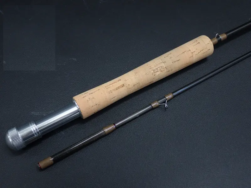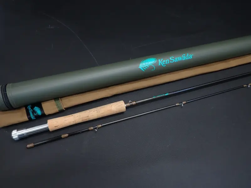 ワン&ハーフデザインでライン荷重に応じロッド全体がベンディングしブレ無く素早く戻る、ハイスピー&ハイラインを生み出すドライフライ向きのパラボリックアクション。ペゾンのコロラドをモデルにデザインされたロッドと思われます。グリーンのkensawdaの文字とサーモンフライがプリントされた後期モデル。使用感は殆どありません。グリップに僅かな汚れ有。