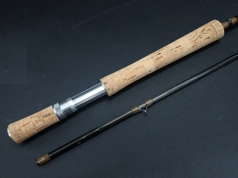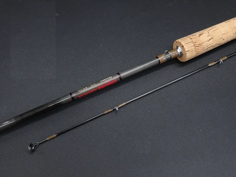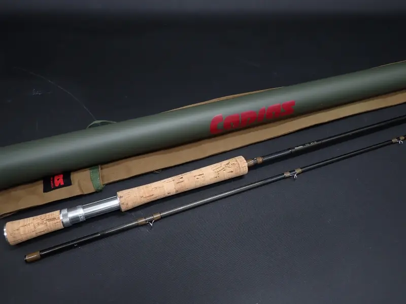 ハイパワー、スローアクションロッド。湖や大規模河川での大型ストリーマーやウェットを使用した釣りに。キャスティングに磨きをかける為の練習用にもお勧めです。赤文字でCAPRAS ARTISTA とプリンとされた中期モデル。グリップの使用感多目。ブランクは若干の塗装表面の擦れ程度はありますが良好です。元々のエンドキャップが無くエクステンションバットが装着されています。