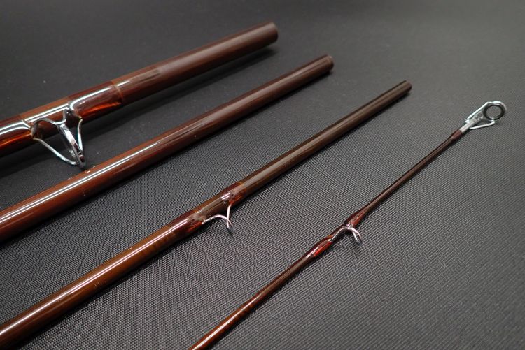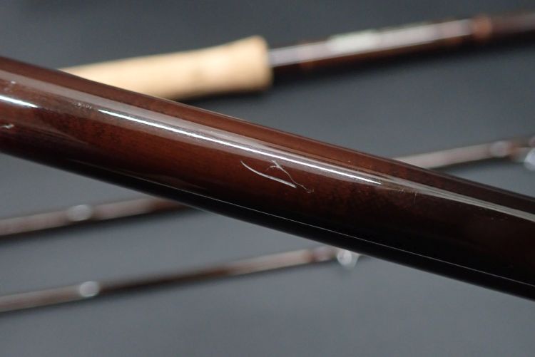 グリップの使用感が多目でパテ埋めが施されています。ブランクの小傷も多めで、ガイドコーティングに微細なクラックもあります。練習用、サブロッドとしていかがでしょうか。