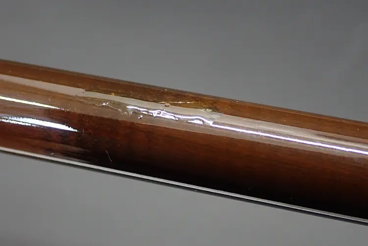 グリップの使用感が多目で一部にパテ埋めが施されています。ブランクの小傷も多めで、#3セクションのバット側にクリア塗装によるキズの補修跡があります。使用感は多目ですが、使用に差し支える問題はなく、まだまだ現役で活躍しそうです。練習用、サブロッドとしていかがでしょうか。