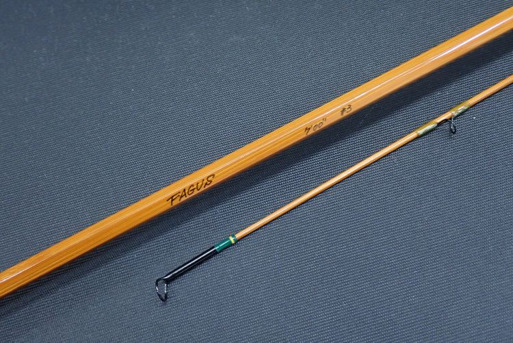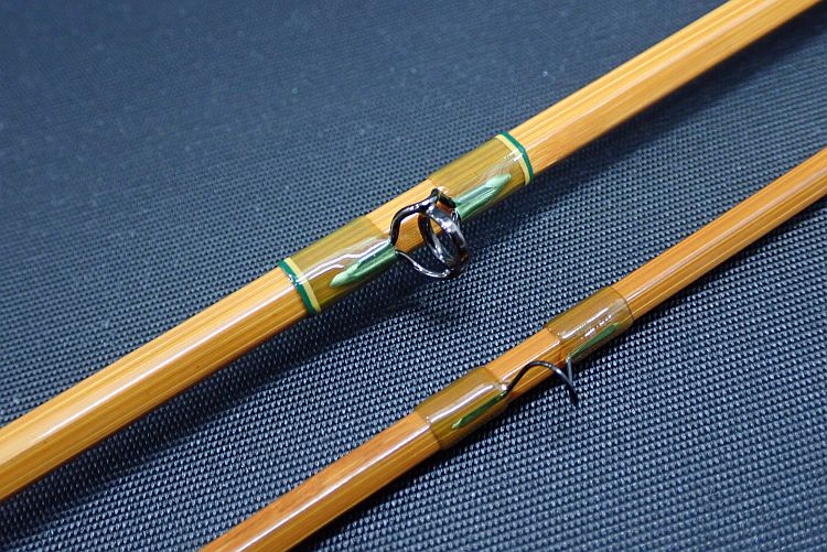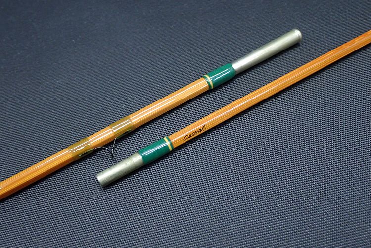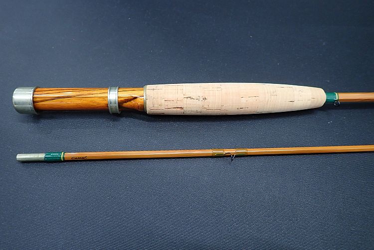 しなやかながら適度にトルクのあるミディアムスローアクション。バンブーロッドとしては戻りが速く、軽快な印象。コルクグリップに若干の使用感、グリップエンド部のメタルパーツに細かい置きキズやスレキズあり。その他目立ったキズ等はなく、全体の程度は良好。