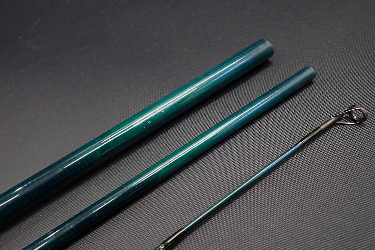 パワフルなファストアクションロッド。グリップの使用感が多目でコルクにパテ埋めが施されています。ブランクの置きキズもやや多めです。#2セクションのメス側フェルールにエポキシ塗装の削れ痕があり仕上げが乱れています。全体経年数相応の使用感がありますが、機能には問題がありません。