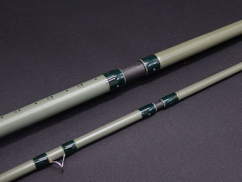 国内のスペイロッドメーカーで数々の名竿を残したCND、今ではあまり見かけ無いフルライン用スペイロッド。確りとしたバット、張りがありゆったりとベンディングするベリー、トルクのあるティップ。ロングベリーラインやフルシンキングラインを楽に扱えるパワフルなトラディショナルスペイアクション。海外のサーモンフィッシング、日本の大河川でのイトウやアメマス、サクラマス狙いでも頼りになるロッドです。使用感は少な目。グリップに若干の汚れ。ブランクはかなり綺麗です。広大な流れに夢を馳せこの機会に如何でしょうか。