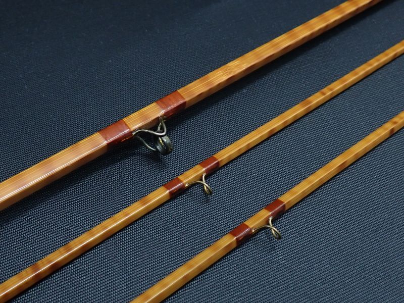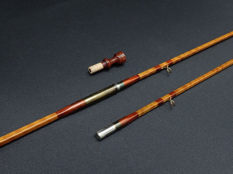 タイガーフレーム(縞模様)の非常に綺麗に仕上げられたロッドです。クォットロッドの特徴で直進性が強いフルフレックスアクション。ブレが無くとてもスムーズにベンドするバランスの良い扱い易いロッドです。