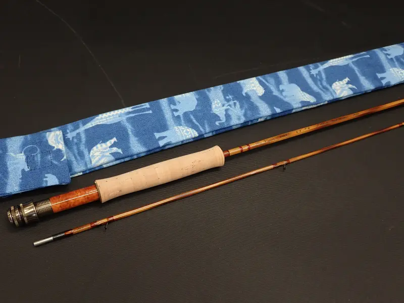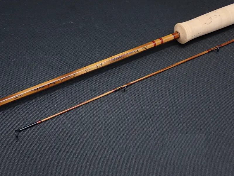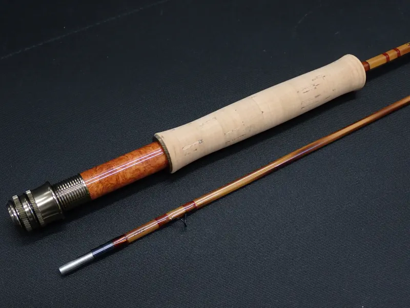 J.Yokota Rod Maker の2025年、巳年の福竿" The Viper "意味は毒蛇でマムシをイメージしたロッド。ポールヤングのミッジをモデルとしたシャープでパワフルなパラボリックアクション。ブランクはフレーム仕上げ、ガイドラッピングは透過性ブラウンに鮮やかなスカーレットのトリム。フェルールは黒染めのニッケルシルバー。グリップは細身のフルウェル。リールシートは花梨、金具はブロンズカラーのアップロックスクリュー。アクションも然ることながら、凝ったつくりの美しいロッド。福竿として限定8本、通常価格の半額で販売されたロッドです。使用感は無く、実釣未使用と思われます。
