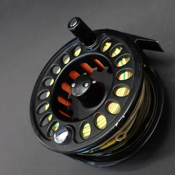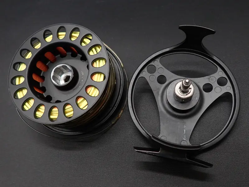 外径:100mm、スプール内幅:35mm WT:307g (ライン込) ライン:スぺイヘッド#7/8 左巻き 交換可