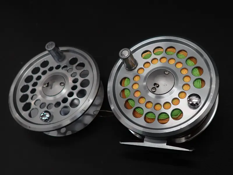 シンプルなデザイン、微調整の利くディスクドラグ搭載のハイコストパフォーマンスリール。正転時サイレント、 逆転時ラチェット音。使用感多目。全体的にくすみ、擦れ小傷があります。機関良好。一個のスプールにシューティングラインが巻いてあります。ラインの詳細は不明おまけです。空のスプールの方のハンドルが固着しており回りません。使用は可能ですが、おまけ程度となります。