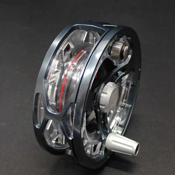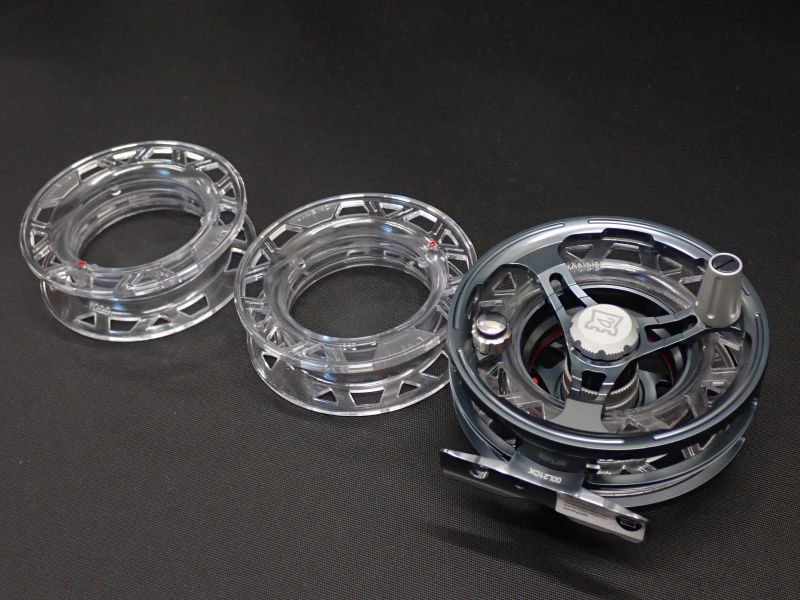 大幅に軽量化したアルミ削り出しフレーム、細いラインに対応したエンクローズ・ラインガード。ドラグノブ2/3回転で微調整が利くフルディスク・ドラグ搭載。耐久性のあるポリカーボネイト製カセットスプールが3つ付属し、新開発のロックシステムで3種類のラインを現場で素早く簡単に交換できます。持ち運びに便利なネオプレーン製ポーチ付き。未使用です。
