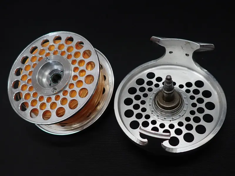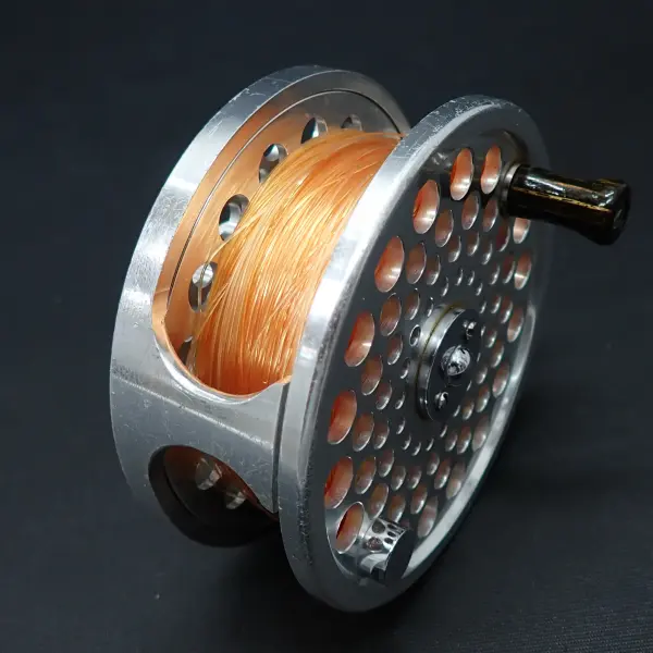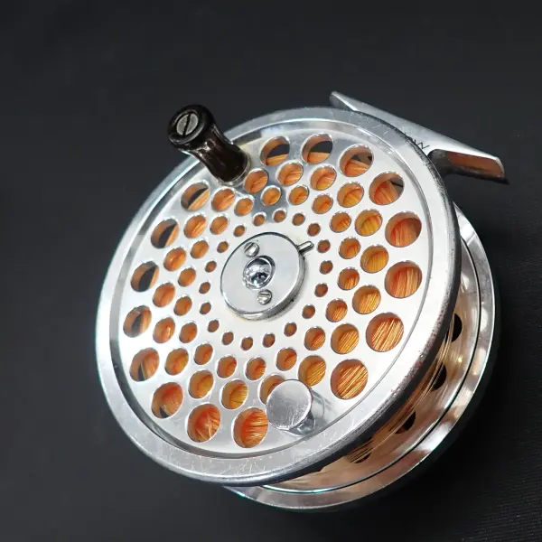 ボディー、スプールともポーテットされた軽量で高硬性なリール。特筆はスムーズな滑り出しで微調整の利く、強力なドラグ。センターに配置された大きなドラグノブで操作性は抜群。大型魚をターゲットに機能性と美しさを追求したリール。正転、サイレントフリー。逆転もサイレント。全体的に細かな傷あり。機関完調。シューティングラインが巻かれています。詳細は不明。おまけです。