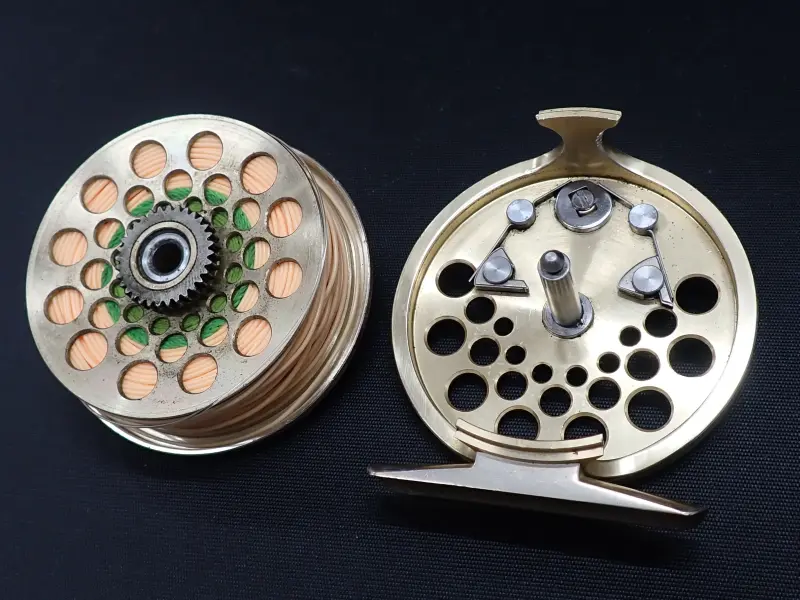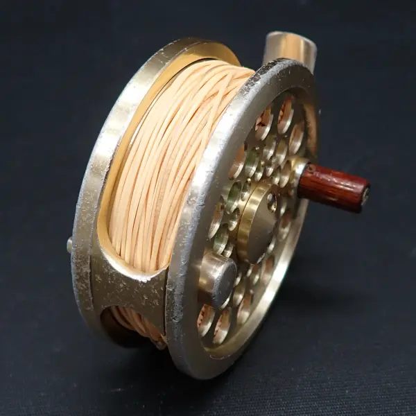 アルミ削り出しのシンプルなデザインの確りとしたクリック式リール。全体的に擦れ小傷多目です。クリックテンションは確りしており機関良好。DT3と思われるラインが巻かれてます。(スプールに貼られていたラベルにはコートランド444/DT3Fの記載)詳細は不明おまけです。