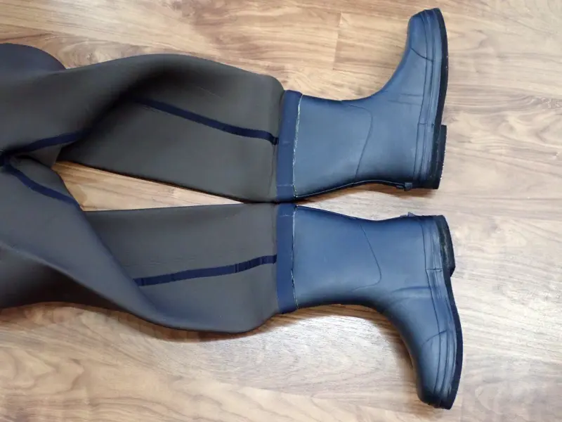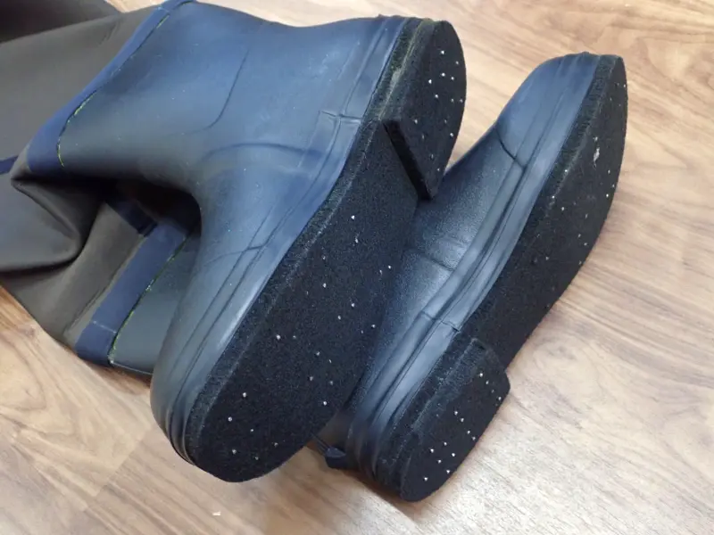 ウェーダーを脱ぐ際に便利な蹴りゴムや、