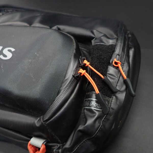 ファブリックはTPU及びDWR加工の高耐水性ナイロン、ディープウェーディングにも安心です。メインコンパートメント にはU字型大型ジッパーにて簡単にアクセス。内部はベルクロ付パネルにて大小二つのスペースに分割でき、たくさんのポケット収納により様々なフライ用品を効率的に収納。