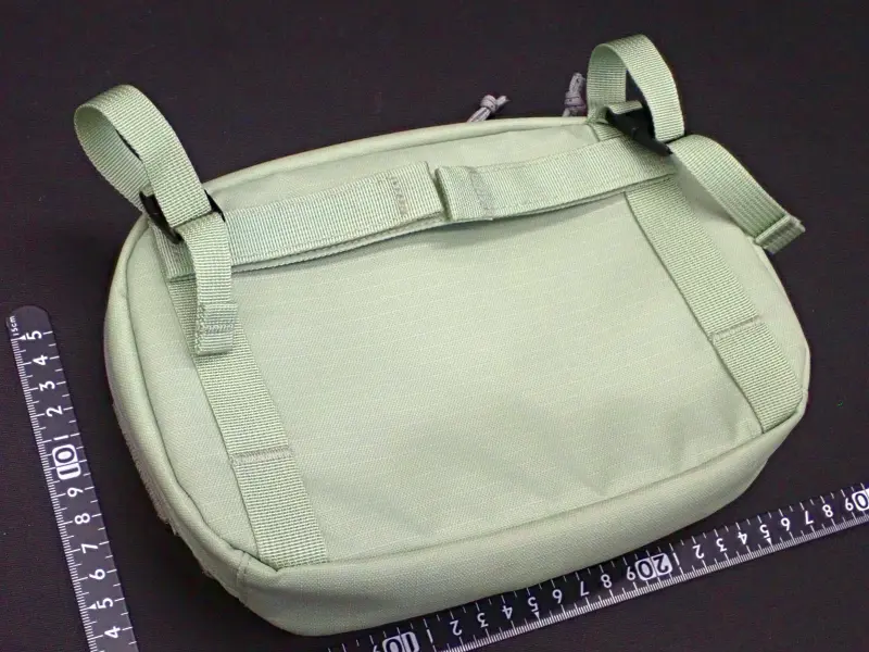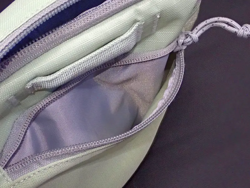 フロントにジッパー式ポケットとメッシュポケットを装備。