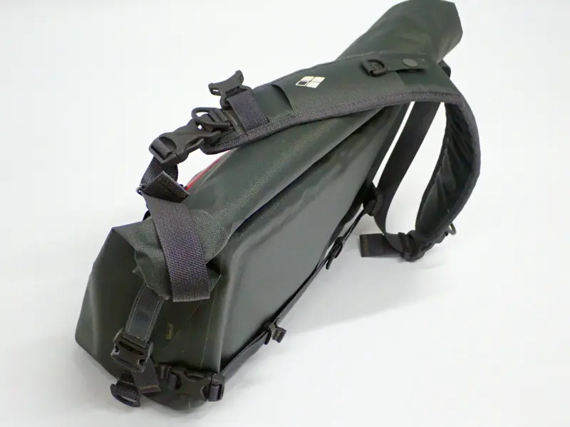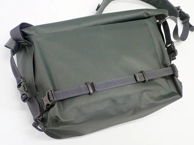 防水性の高いロールアップ方式のバッグです。