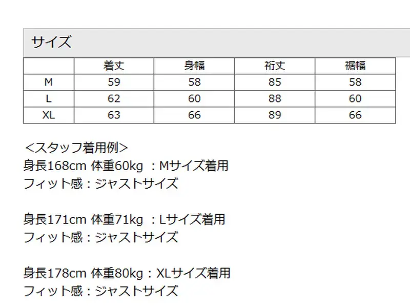 サイズ:日本サイズのXL