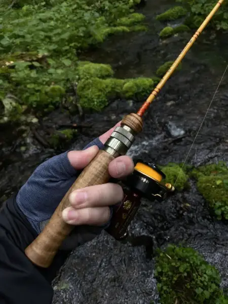 全長:4ft5in(1350mm) 3ピース 仕舞寸法:475mm ルアー:~7g グリップ:花梨瘤/ウォルナット/カーリーメープルの3種から選択可能