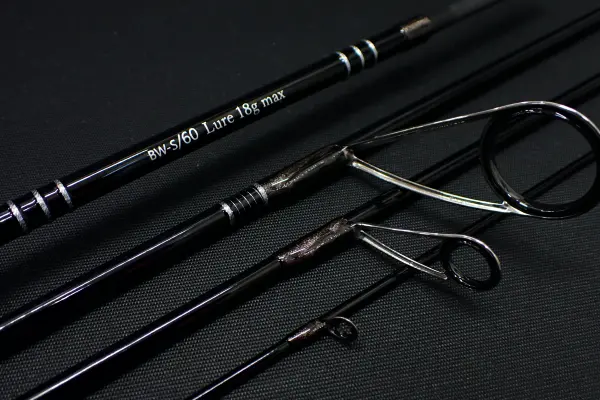 弾性の違うカーボンシートの組み合わせにグラスファイバーを3割程度コンポジットしており、ダルさは排除しながらも硬すぎない絶妙な張りがあり、かつ繊細なティップでキャスティングのしやすさとルアーアクションのしやすさの両立させることに成功しました。 スピニングロッドで、グラスでは柔らかすぎと感じたり、カーボンのみのブランクでは固すぎると不満を感じている方にとってはちょうどよく感じるコンポジットブランクスを採用しています。 BLACK WATERシリーズのハンドルはリールシート部分が花梨バール材、グリップ材はAAAAグレードの高品質コルクを採用しています。 他メーカーのコルクグリップは良くてAAAグレードが多い中、AAAAグレードにこだわった理由としては見た目の穴の少なさというだけでなく、コルク密度の高さによる反発力の有る握り心地は他の素材には得られないものだからです。 BW-S/60は本流の中上流域でミノーやスプーン、バイブレーションや抵抗が大きいロングビルミノーの使用にも対応します。 例えばサクラマスに関してはヤマメを釣るようなつもりで釣りをすると好釣果が得られることが多く、サクラマス用の専用ルアー以外のものも効果的なため、それらのルアーを小気味良くアクションさせるにはこの6フィートクラスのロッドが重宝します。 本流ヤマメとサクラマス狙いの中上流用タックルとして、また4pcsで仕舞寸法もコンパクトなパックロッドのため北海道遠征の1本として、冬季本流C&Rと色々と取り回し良く釣りを展開するのにもってこいです。 また河川だけでなく湖岸近くまで寄ってきたトラウトにミノーやジグミノー、シケーダプラグなどを頭上の樹木に接触させずキャストがしやすい全長となっています。 WESSEXトラウトロッドはガレージブランドらしく、少ない製造数であってもオリジナルのパーツ類の開発等細かい箇所に一切の妥協をせずに作成している為、そこらのマスブランドとは一線を画していますので価格もそれなりに張りますが、長くご愛用頂けるためのこだわりを随所に設けてあります。 この度は最もお勧めしたいロッドの登場です。 是非ご検討ください。SPEC