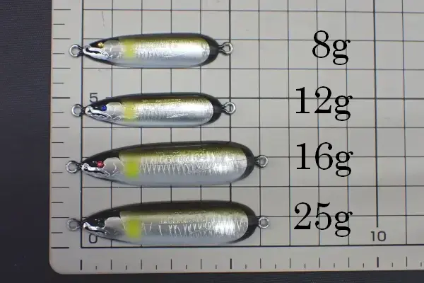 ○8~16g:河川や浅めの湖、表層~中層レンジに。