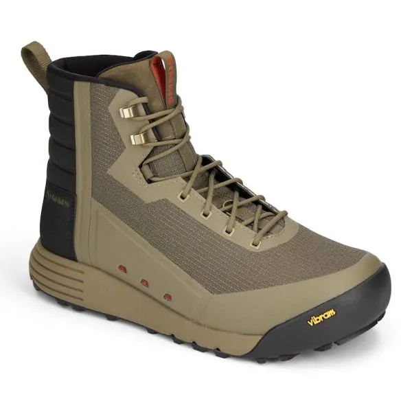 トレイルからウェーディングまで、高いパフォーマンス力を持つ軽量ブーツ。2種類の素材の異なるVibramコンパウンドG.O.A.Tソール(Grip On Aquatic Terrain)を採用したこのブーツは高い安定性、比類なきグリップを発揮し、快適性も併せ持ちます。業界最先端のVibram Idrogripをアウトソール中央に配置し、その滑らなさと耐久性はまさにゲームチェンジャー。釣行日数が多く、高品質なギアを求めるアングラーも納得の一足。