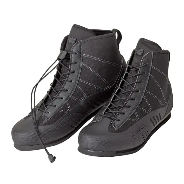 山岳渓流での信頼性を追求し、Foxfireの技術を結集してグリップ性能・軽量性・耐久性を高い次元で備えたウェーディングシューズです。アッパーのプロテクションには耐摩耗性・耐候性に優れるRPU(ポリウレタンラバー)を採用し、ベース地との直接接着成型によって強度と軽さを両立。フィット感重視の2Eワイズ仕様、歩行の屈曲を利用した水抜き構造により、軽快な遡行をサポート。8ホール仕様でホールド感が高く、シューレースは解けにくいコードロック式。ストッパーと余り紐はシュータン内のポケットに収納でき、スマートで安全です。アウトソールには独自開発のNon-skid Rubberを採用。コケやヌメリの少ない源流域ではスタッドなしでも高いグリップ力を発揮し、入水時の重量増も抑制。優れた屈曲性により細かなエッジが立ち、岩を足裏で“つかむ”ような安定した歩行を可能にします。