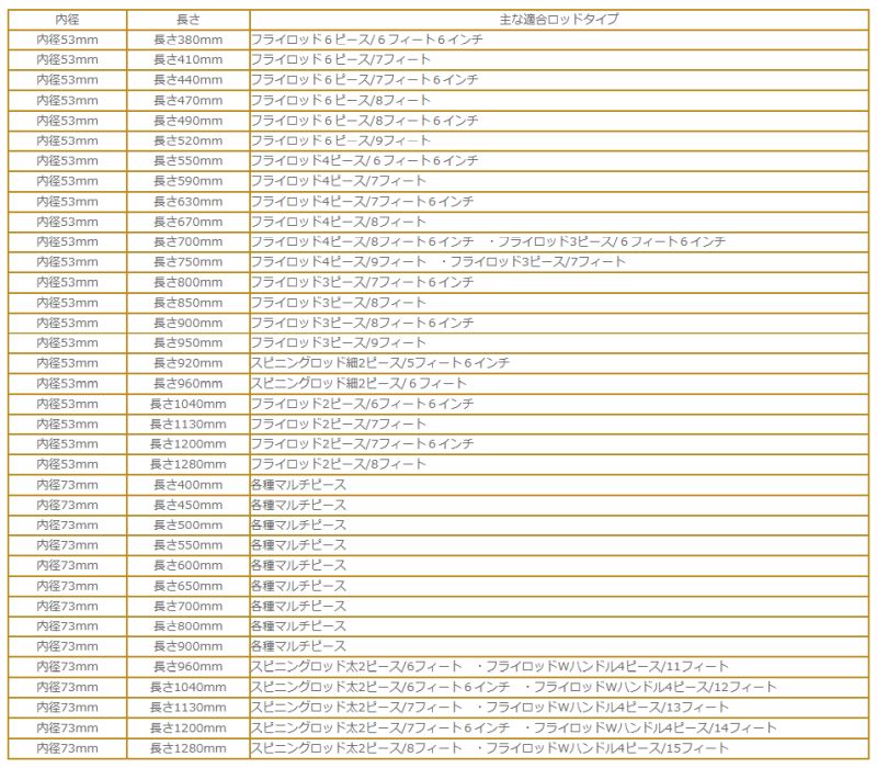 マルチピース用ロッドチューブとなります。収納ロッドの仕舞寸法を目安にサイズをお選びください。