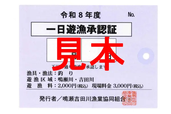【遊漁証】 2026年度 鳴瀬吉田川漁業協同組合竿釣遊漁証 一日券