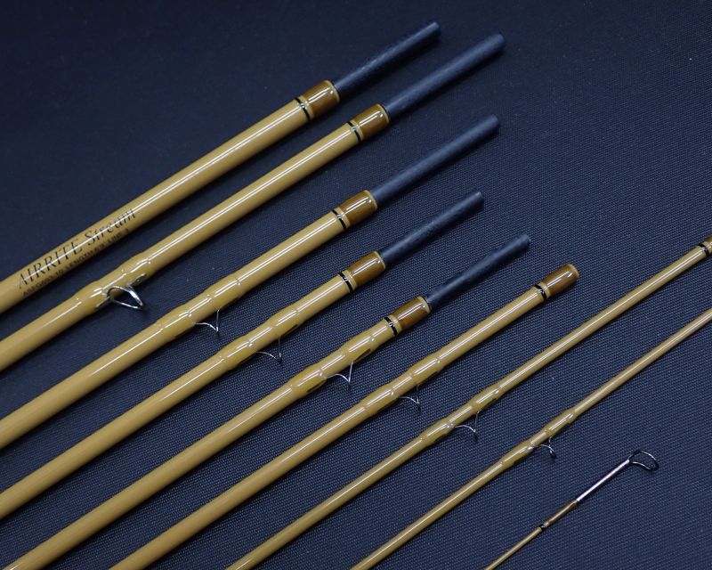 ワンピースが23cm、28㎝のケースに収まるコンパクト設計。バット上部よりトルクフルにゆったりとベンドするミディアムアクション。これが10ピースかと驚くほど美しくスムーズにベンドしショートレンジでもループコントロールが自在です。リールシートにはニッケルシルバーのポケット&リング。ソリッドティップ仕様。未使用品です。