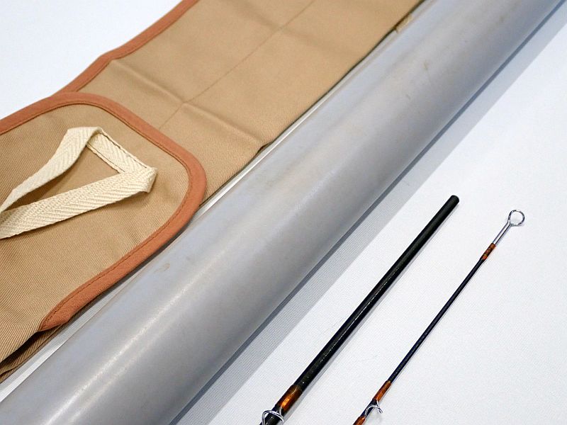 黒いアルミロッドケース、ロゴ入りの竿袋のようです。