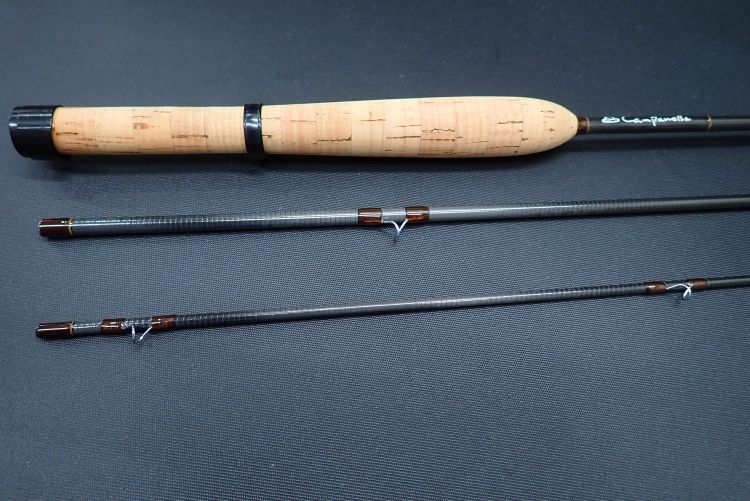 ベリーまでしっかりとベンドしますが、ティップリターンにダルさは無く、キャストタイミングの取りやすいミディアムスローアクション。アンサンド仕上げ、オールコルクのグリップ&リールシートという無駄なものは一切ないシンプルなロッドです。短めのパンプキングリップは、ショートグリップがお好きな方にお勧めです。