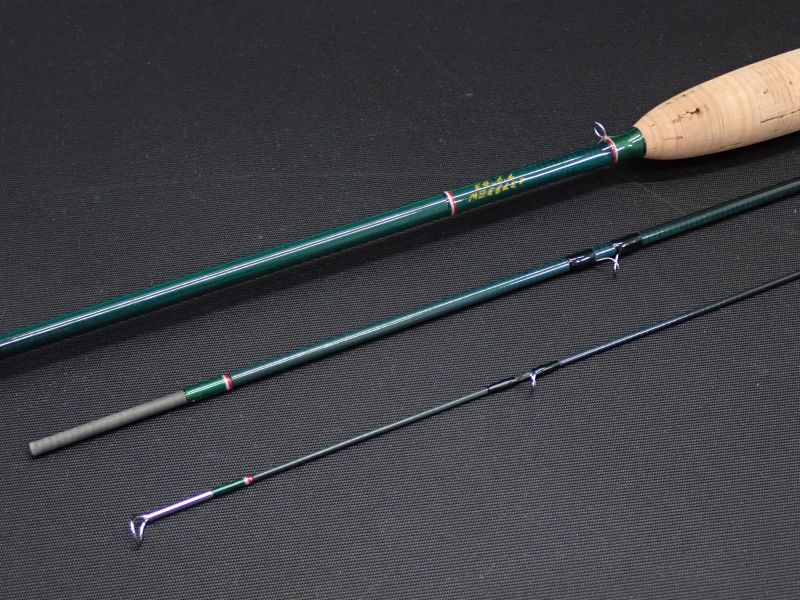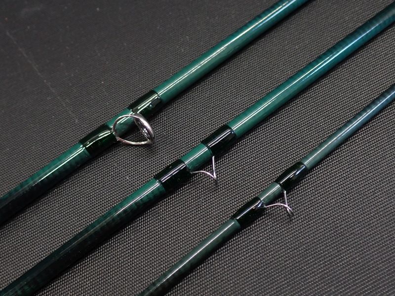 青みがかったエメラルドグリーンのブランクに鮮やかな赤と白のテッピングが美しいカムパネラのフラッグシップモデル。しなやかで戻りの速いティップ、ロッド全体がスムーズにベンディングするパラボリックアクション。ファインティペットも容易にターンさせプレゼンテーション。軽量スネークガイド、ストリッピングガイドはSICガイドを使用。使用感はかなり少な目です。ブランクに僅かに微細な傷あり。