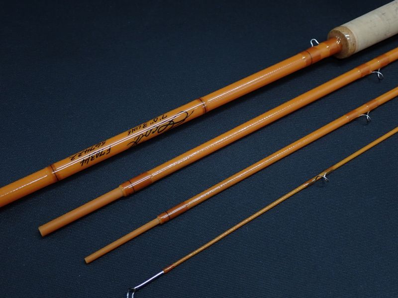 スコットのライトラインのマルチピースグラスロッドは先進的なテーパーと中空インターナルフェルールで繊細でスムーズなアクションを実現。渓流のドライフライフィッシングに改革をもたらしました。F703/4はその代表ともいえるモデル。ブランクは1974年から2年間だけ使われていたハニーカラーを忠実に再現しております。ブレ無くロッド全体がスムーズにベンドするプログレッシブアクション。ショートレンジでの繊細なドライフィッシングで活躍します。
