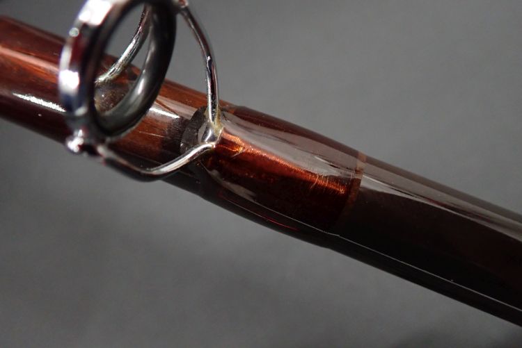 グリップの使用感が多目でパテ埋めが施されています。ブランクの小傷も多めで、ガイドコーティングに微細なクラックもあります。練習用、サブロッドとしていかがでしょうか。
