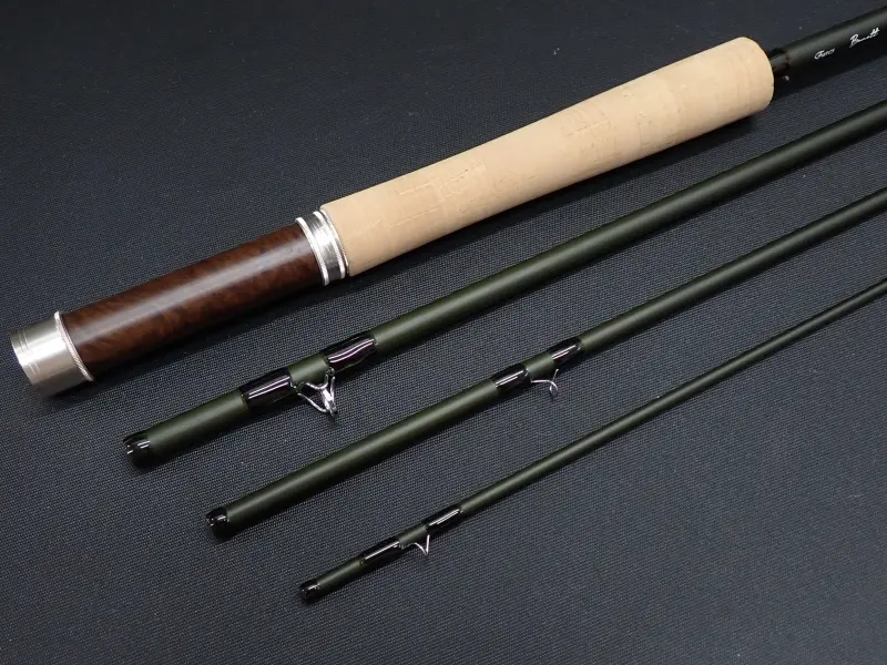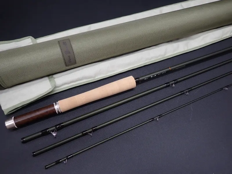 低反発カーボンによるグラス素材に近いしなやかで粘りのあるブランク。ラインと一体感のあるキャストフィールで近距離から中距離まで様々なシチュエーションで活躍します。グリップの形状は手になじみやすいショート・リッツタイプ。8645はボリュームのあるフライも楽にターンオーバーさせ、渓流や本流の大型トラウト、レインボーをターゲットにした一本。使用感は無く実釣未使用品と思われます。