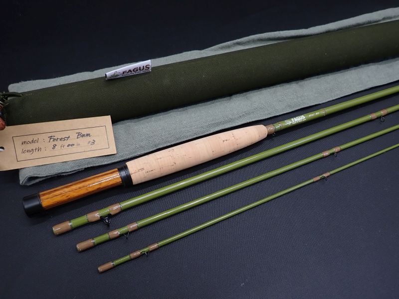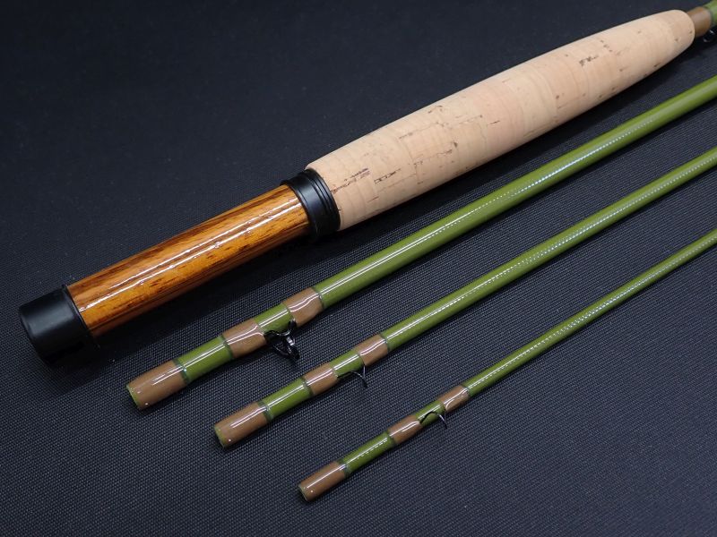 アースカラーをふんだんに取り入れた森を楽しむための遊び道具。ゼブラウッドのリールシート、ブラスト処理を施したブラックアルマイト加工の金具も自然に調和します。f-8003FBはトルクのあるバットと粘りのあるティップのパラボリックアクション。ラインののりがわかり易く、大きなフライもポイントまでしっかりと運ぶことのできます。使用感はありません。