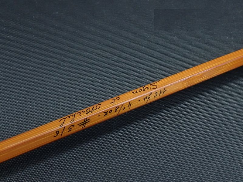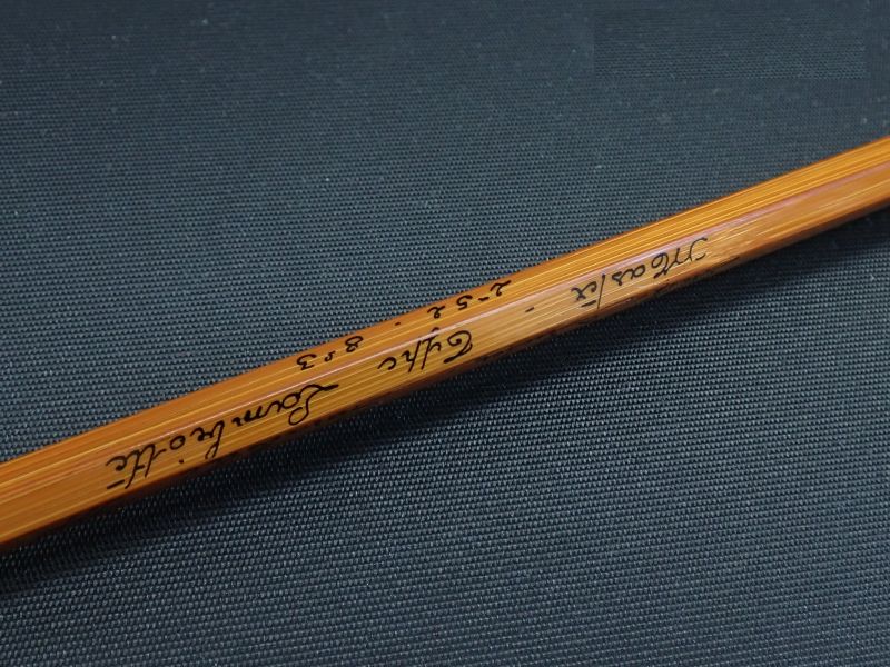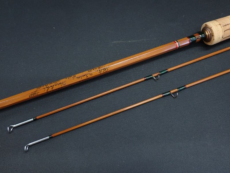ペゾン・エ・ミッシェルは今は無きフランスの老舗ロッドメーカー。シンプルで美しいデザイン、卓越した性能で現在も人気のメーカーです。マスター8356は全体に張りがありバットより緩やかにベンディングするパラボリックスロー。大場所のドライにワイドループでのWETにも面白い一本です。グリップに汚れと若干のざらつき、フェルールのラッピングに若干のクラック有。使用には影響しません。他ラッピング、バーニッシュの状態は良好です。フェルールの込みは根元まできっちり入り確りとジョイントします。まだまだこれからも、十分活躍出来るコンディションです。