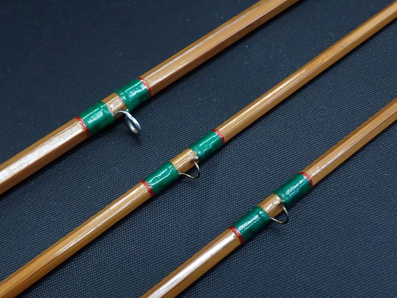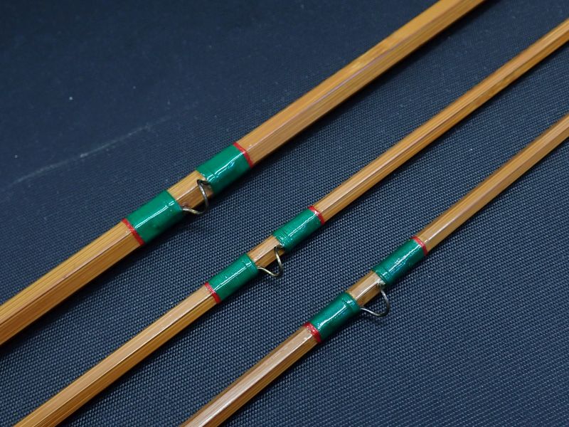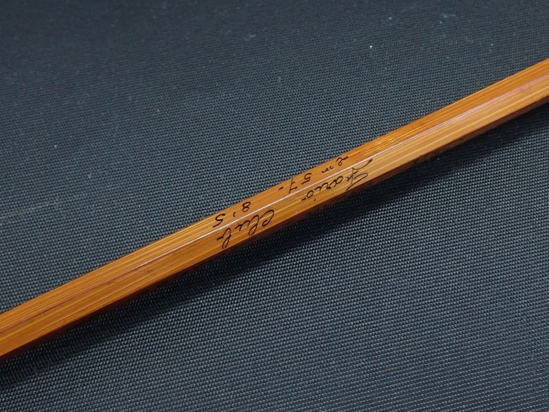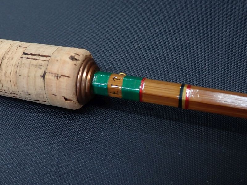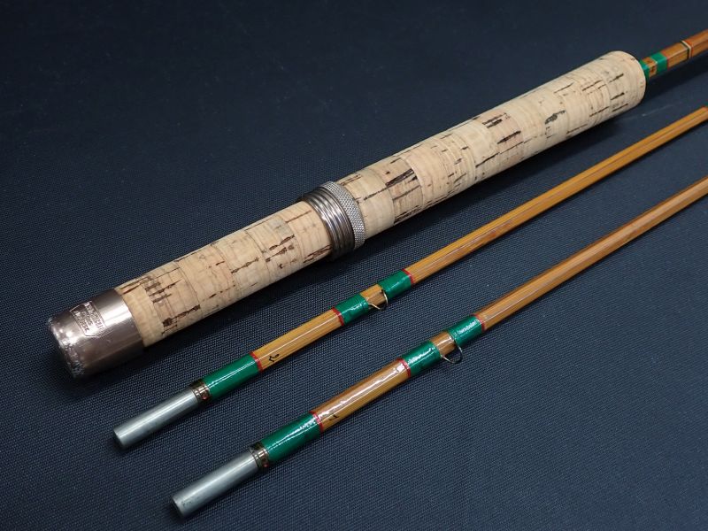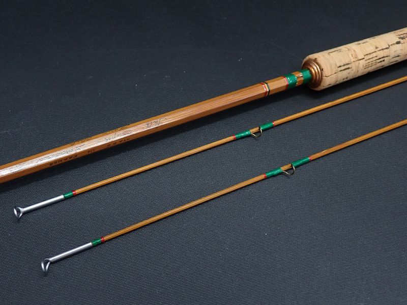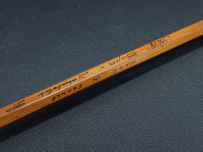 ペゾン・エ・ミッシェルは今は無きフランスの老舗ロッドメーカー。シンプルで美しいデザイン、卓越した性能で現在も人気のメーカーです。ファリオクラブ856はハイスピードハイラインの考案者シャルル・リッツが自らのためにデザインしたロッドで現在でも大変人気のあるモデル。トルクのあるスローアクションは美しいハイスピードハイラインを生み出します。広めの渓流で大物狙いに。グリップの使用感やや多目、若干のざらつきあり。ラッピング、バーニッシュの状態は非常に綺麗でレストア済と思われます。フェルールの込みは7~8分程度で確りとジョイントします。まだまだこれからも、十分活躍出来るコンディションです。
