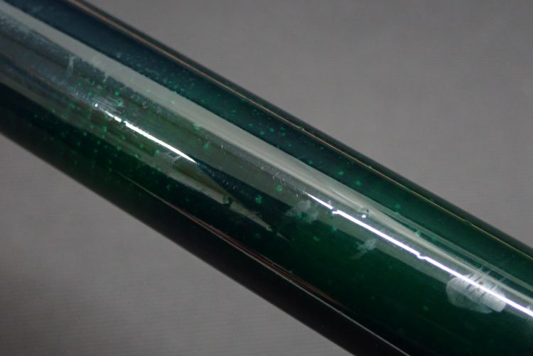 パワフルなファストアクションロッド。ブランク塗装面に製造時のものと推察されるブリスター(気泡)があります。ブランクやエンド部に置きキズも点在していますが、全体の程度は良好です。