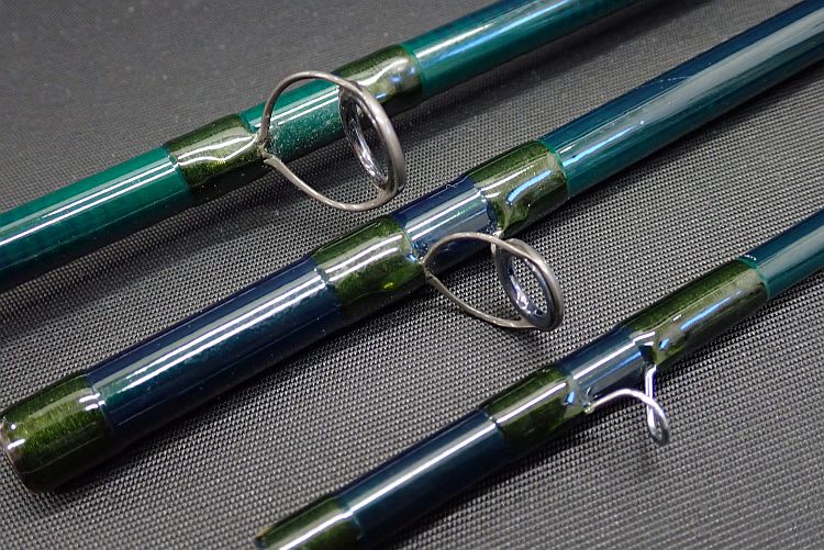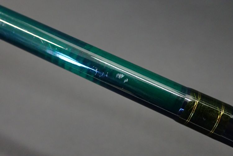 グリップの使用感が多目でコルクにパテ埋めが施されています。各セクションのブランクに置きキズがあります。全体に使用感はありますが、ロッドの機能は良好です。